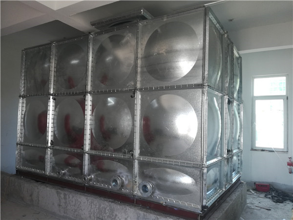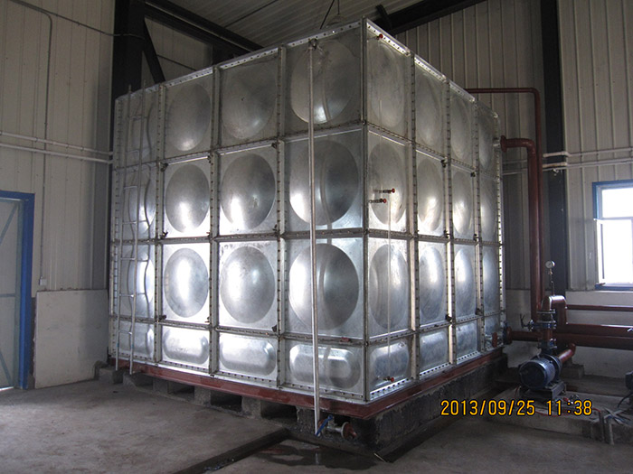 采用Q235鋼闆沖壓而成,形成1000×1000、1000×500、500×500等标準闆塊後經熱浸鍍鋅處理後形成鍍鋅水箱闆。優點:一、全螺栓現場組裝,快捷方便,組裝時采用密封膠條密封,不會出現漏水及密封不嚴現象。二、水箱内拉杆結構,使力學性能合理,高可達到4米。容積和規格可按照用戶要求定做。