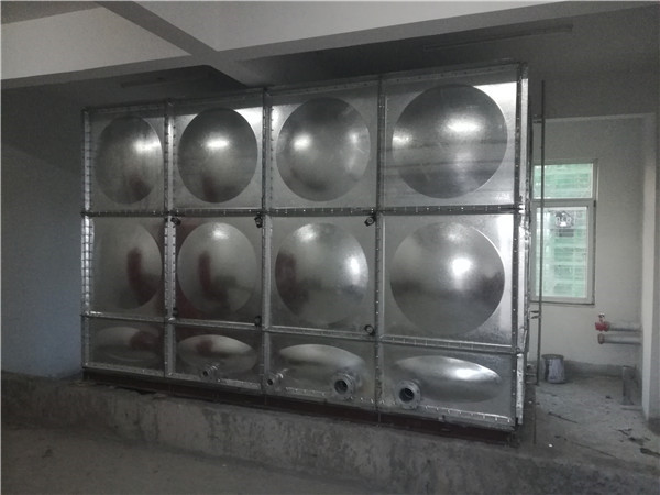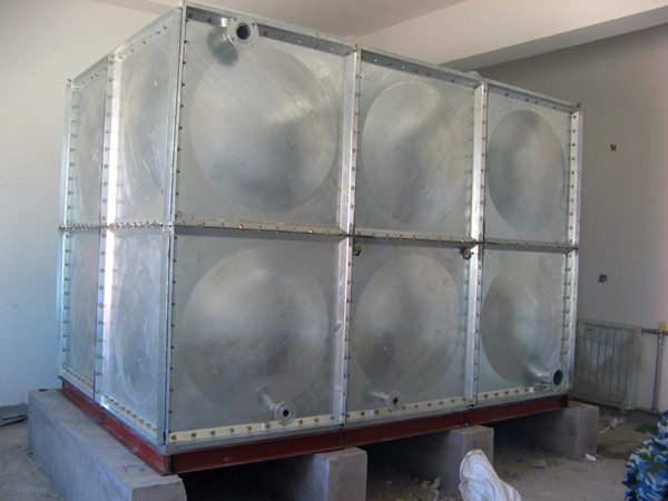 采用Q235鋼闆沖壓而成,形成1000×1000、1000×500、500×500等标準闆塊後經熱浸鍍鋅處理後形成鍍鋅水箱闆。優點:一、全螺栓現場組裝,快捷方便,組裝時采用密封膠條密封,不會出現漏水及密封不嚴現象。二、水箱内拉杆結構,使力學性能合理,高可達到4米。容積和規格可按照用戶要求定做。