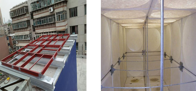 水箱内部拉筋中一般會有一根或幾根主拉筋,這根主拉筋的作用是爲了保持水箱不易變形不易坍塌,當水箱儲水時,水箱承受的水壓是非常的大地,如果沒有任何的支撐,水箱很容易變形。使用的材料鋼筋一般是比較厚的的鋼筋起到支撐的作用和相互依靠受力,比較大型的水箱拉筋需要間距密集一些。河北炅嘉環保設備有限公司的水箱生産基地。